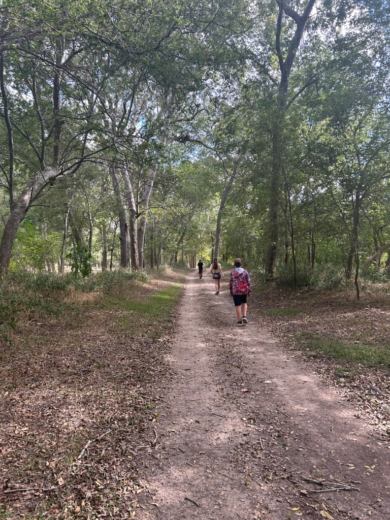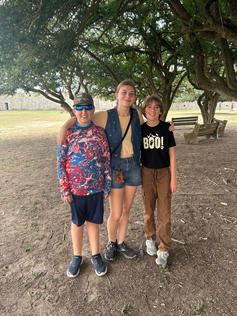 Once the official field trip was over and everyone dispersed, the kids and I took a walk down a trail along the San Antonio River to a camping area and back. We also visited the memorial for Col. Fannin and his men on the way home, but I didn’t get any pictures there.