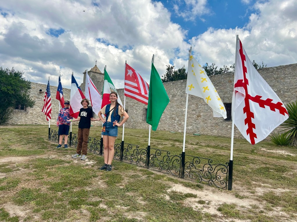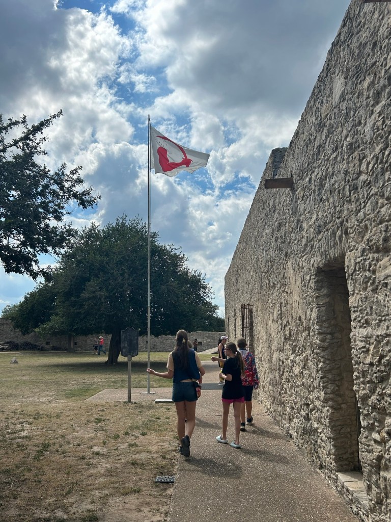 Afterwards, we took some time to explore the grounds of the fort before a stop in the museum and gift shop area. We learned about Captain Dimmitt’s flag that he designed and flew at what he called “Fort Defiance” in December of 1835 when Goliad declared its independence from Mexican rule. The image of the message that one would rather cut off their own arm than submit to tyrants predates the “come and take it” cannon flag, but wasn’t widely used because it was viewed too radical by many revolutionary leaders. I, however, loved it and purchased one for our home 🙂