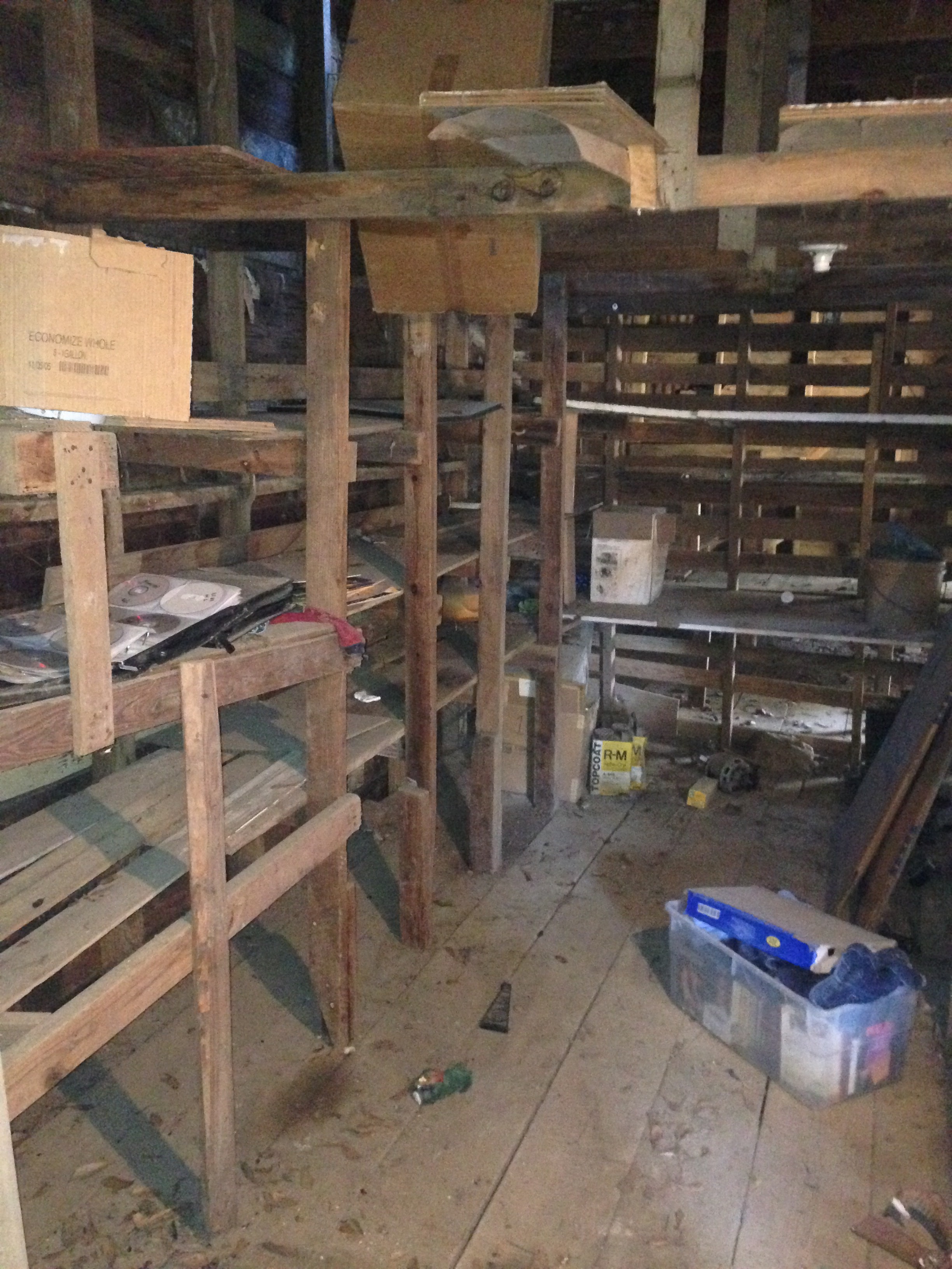 most of it has been scrap metal (coffee cans full of nails/screws), disintegrated empty cardboard boxes, rat poop/nests and lots of layers of dirt and cobwebs.