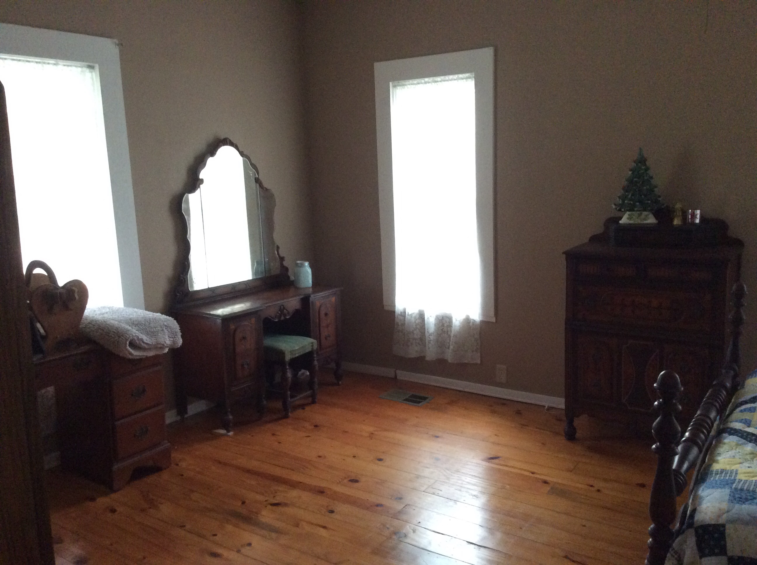 The Gregorys are ready to entertain! If you’ve got the time and ability to drive up here, we’d love to have you on the farm. I can’t say we are 100% where I want our guest room to be, but I can confidently say a comfortable stay can be achieved. My Inlaws tested it out just last weekend! Afterall, they are the generous donors of the gorgeous antique bedroom set.