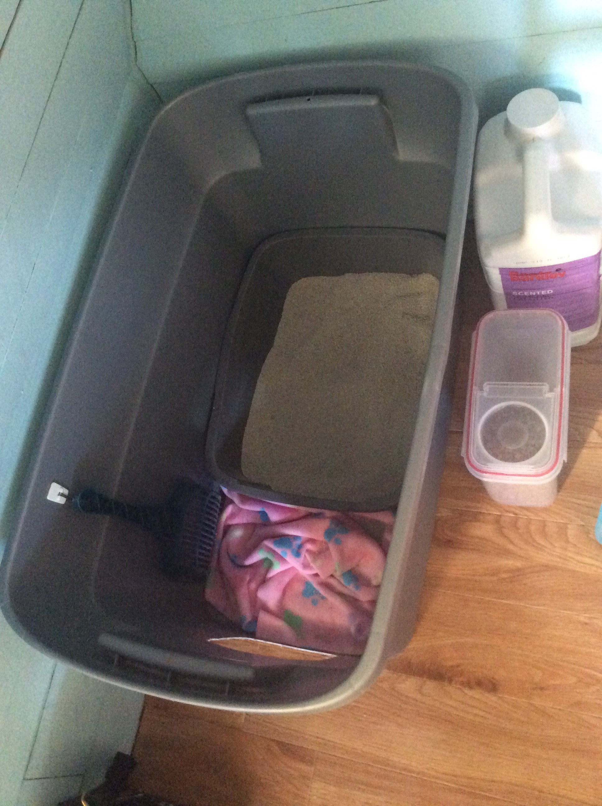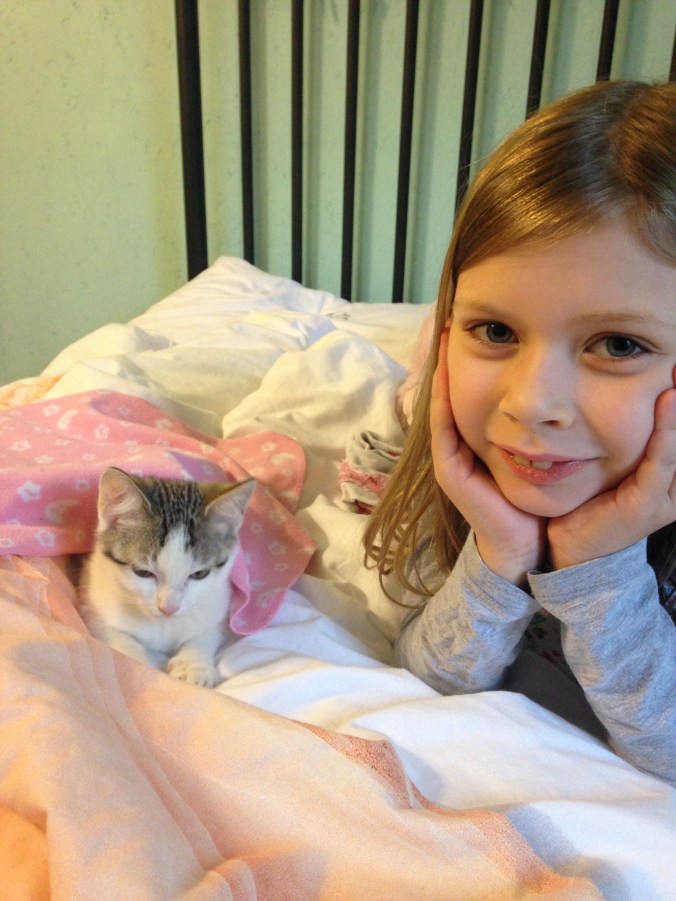 Ashlyn is an amazing care giver! She caught on quickly to scooping the litter box that is in her room. Her cat, right? I’m actually quite impressed with the pinterest inspired system we put together to make the cohabitation bearable.