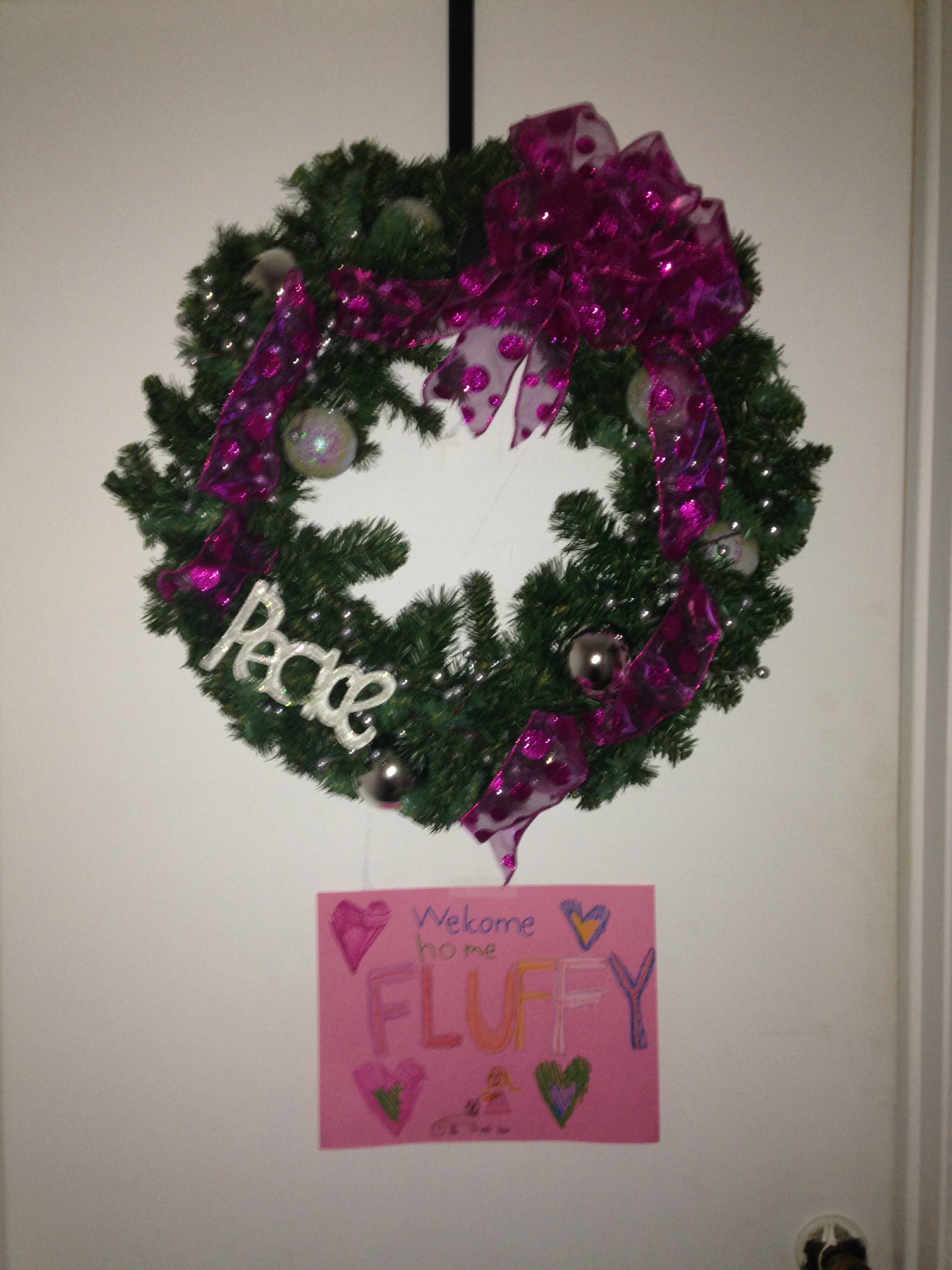She has actually been asking for 2 years for an indoor cat to make her own and the timing was finally right when she asked again a few weeks ago. And it made Christmas easy for me. As soon as we walked into the cat room, she had an instant connection with what is becoming a perfect fit for our family. She had already made up her mind beforehand that it’s name would be Fluffy, making a welcome sign and all.