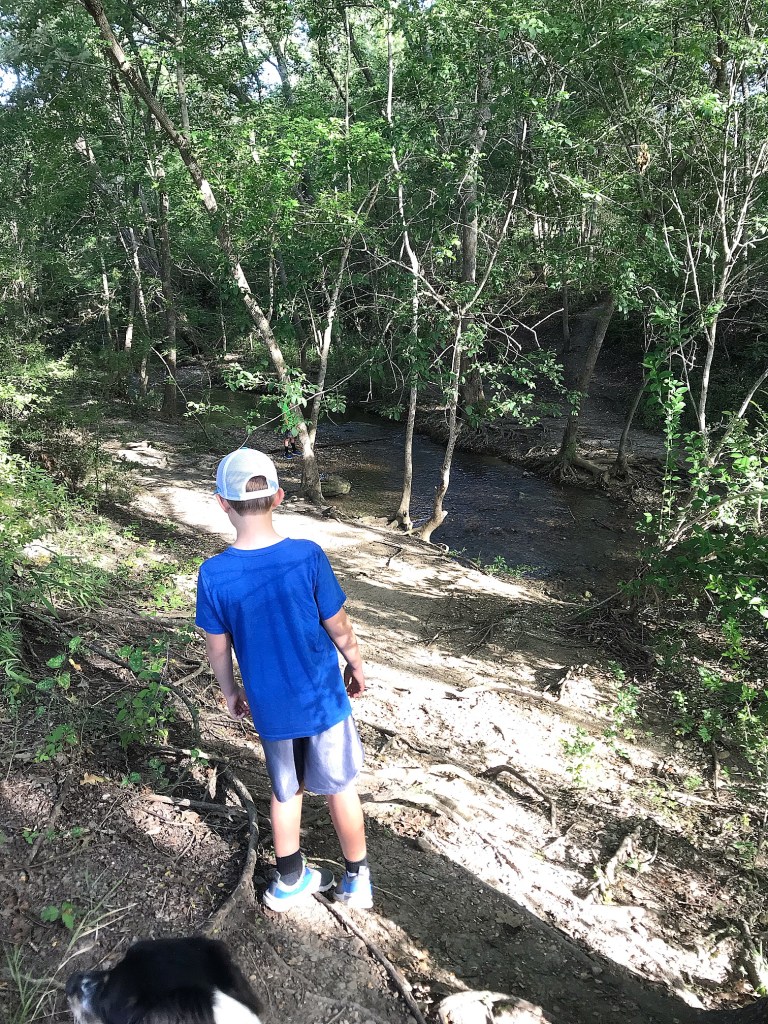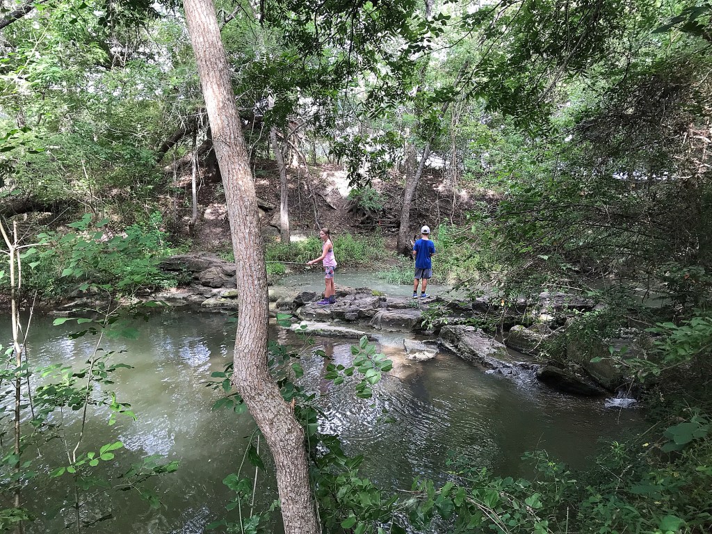 Extremely hot and tired, I sat down for a minute before making lunch and was able to take in the actual perks to our site. We were right on the bank of the prettiest part of the Clear Fork Creek that runs through the park. And then I broke out in hives.