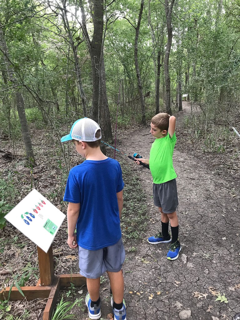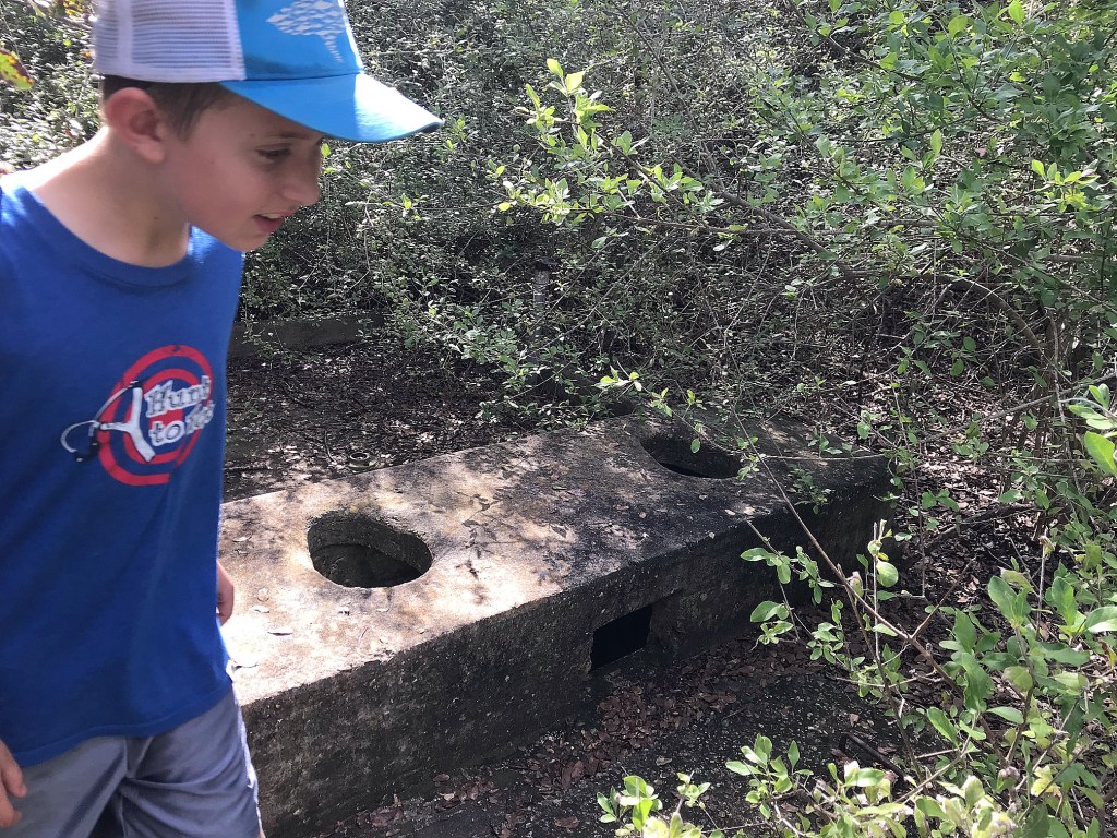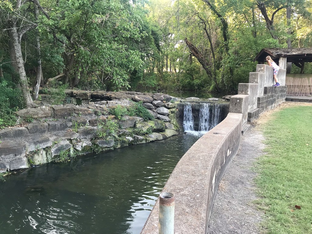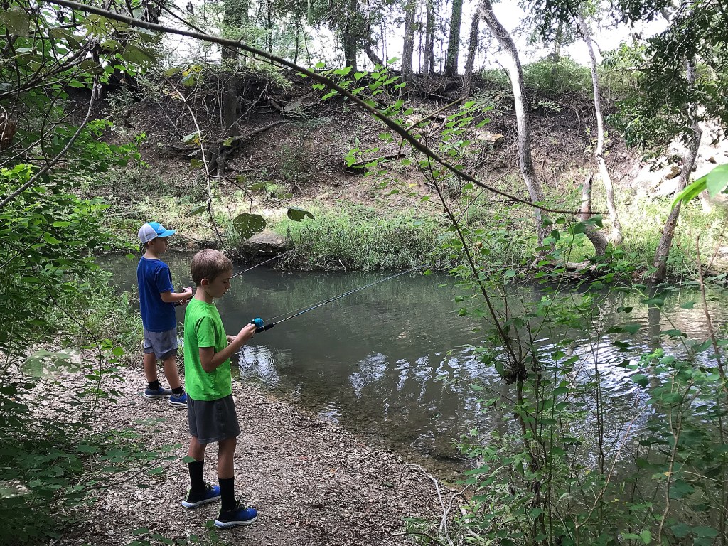 We walked a short trail along the bank of the creek with fishing poles in hand casting where openings allowed. An added bonus was a “story walk” the park installed along the trail and it happened to be Eric Carle’s “Hungry Caterpillar!” A long time favorite of the kids. 🙂 We crossed one of the many CCC dams throughout the park and checked out the ruins of an old latrine lol! The kids couldn’t get over “just pooping out in the open sitting on a hole on rock! And side by side at that!” 😆 I’m thinking there may have been a wood privacy structure at one point. So our morning walk was entertaining, scenic and historical(?)…off to a good start!