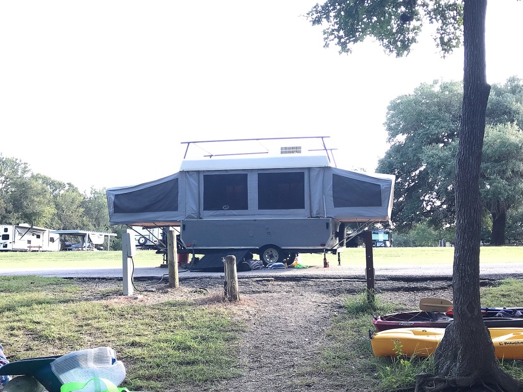 We arrived around lunchtime to our unique site and I understood why it was the last one available. It was classified as a pull thru site, but what it failed to mention was that it shared the pull thru driveway with 2 other hookups! Really bizarre and quite tedious having to pull past other camps on the narrow driveway. Then came the leveling. I always pull up to a site, get out and walk the pad before backing/pulling in to survey the best positioning and could see right away this was going to be a nightmare. The entire driveway sloped down a hill….my 30 year old camper doesn’t self level lol! After 2 hours, which included hitching back up to adjust, the use of 2 jack stands and 2 hydraulic lifts…and did I mention the site had zero shade? Oh yea… I finally called it good enough and even then the door barely worked. Why even have that site available? Ugh.