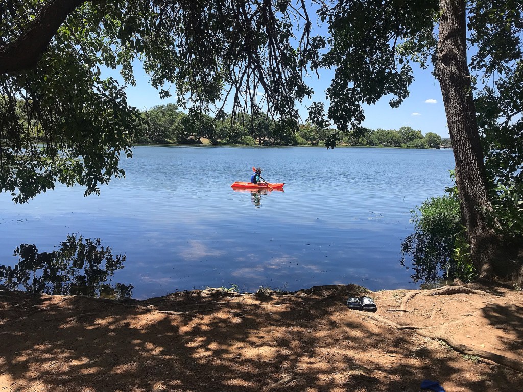 The next morning, Archer hopped on the bow of my kayak and we paddled into the Waterhole and he casted along the bank. One more ride before it was time to pack up. We WILL be back and will get that exact spot and will stay longer and will bring Nathan! Everything was amazing and we barely saw the highlights. We were rallying from Lockhart for sure, onward to Lake Brownwood!
