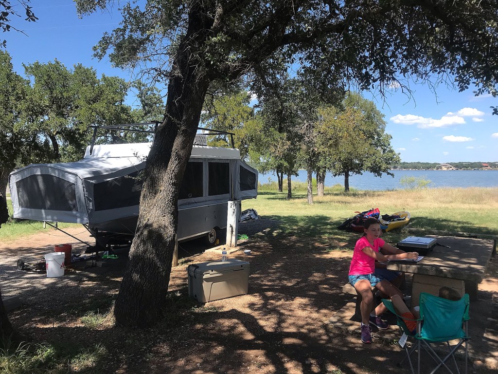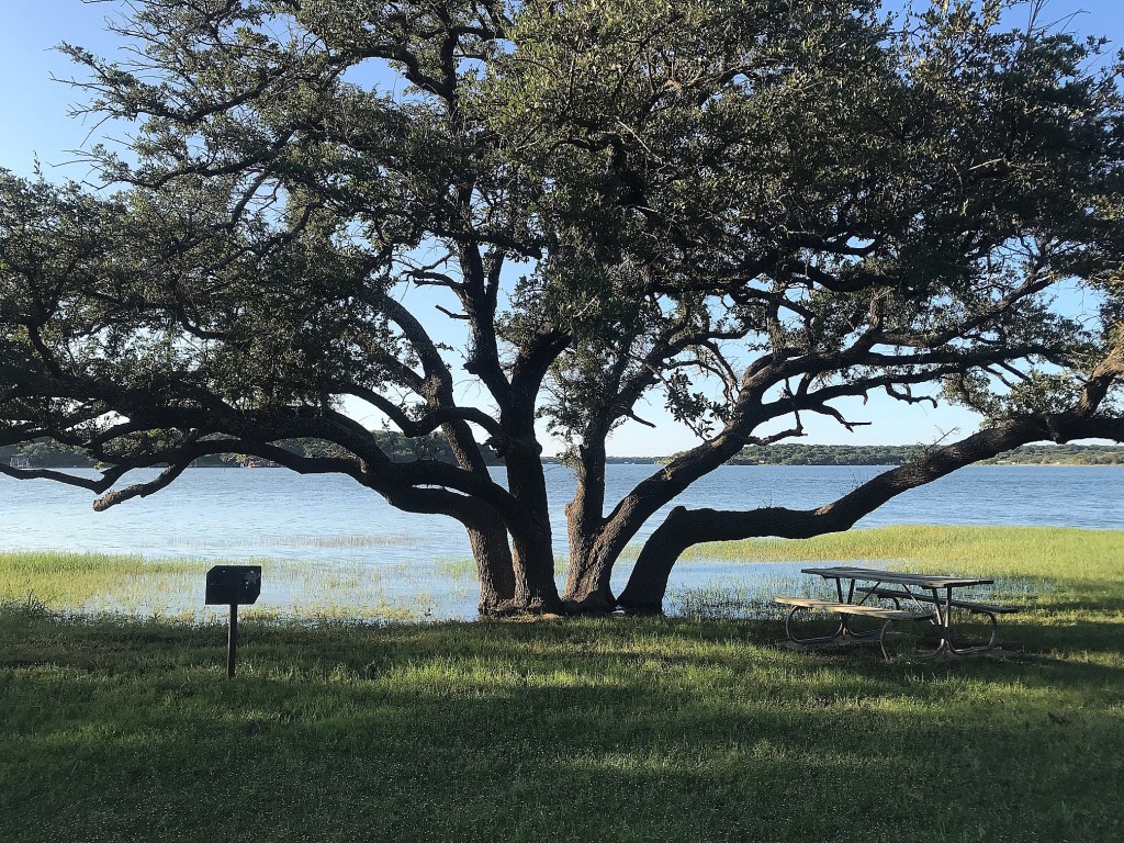 We didn’t have much prior knowledge or expectations for Lake Brownwood other than it is a prominent CCC Park and was very convenient to visit on our way to Abilene. Thanks to our morning kayak trip on Inks Lake, we had to,pack the camper up around 10 am just as the heat of the day was setting in. So we took our time for the drive up there and arrived just before 3. Thankfully this site had another prominent shade tree for midday coverage. But the heat of the trip was still getting the best of us and the break down and set up of day 5 was rough.