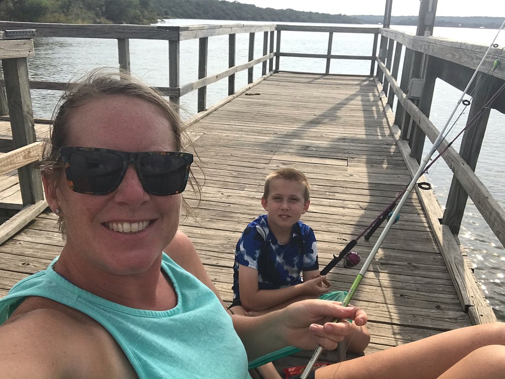 That afternoon was spent in the car traveling to the other side of the lake looking for lunch at a local marina. Unfortunately they were short staffed and would only be serving dinner that day. Instead we rested and snacked in the camper until the sun went down a little more and then hung out on the fishing pier. Again, we didn’t catch anything, but we saw a gar act like a dolphin hitting the surface and that was surprising and entertaining. After dinner, we settled in for an early bed time with an early departure the next morning (so happy to pack up when it was cooler) for Abilene State Park.