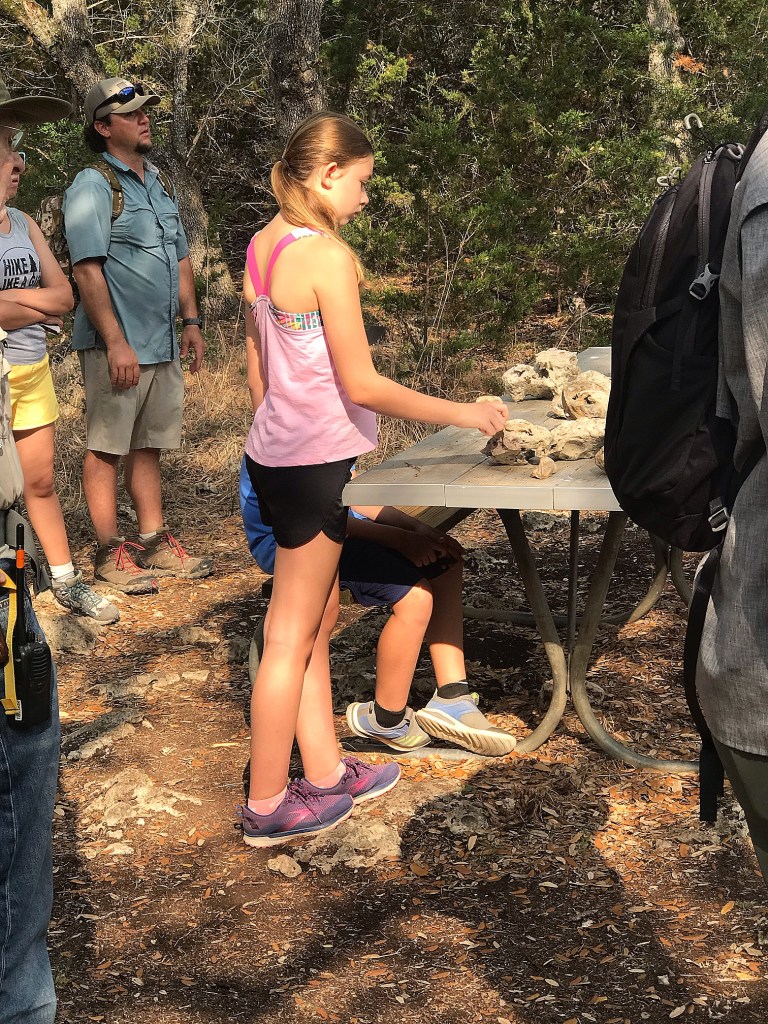 Around half way, there were a few tables set out with bones and unique rocks that had been found in the park and the kids enjoyed the hands on experience. We also saw an Eagle Scout built Brown-headed Cowbird trap. Apparently cowbirds are negatively affecting the song bird population by parasitically laying eggs in other bird’s nests to be hatched and the inferior chicks push the original young out. That was some new, wild information! We were not able to see how the trap worked, but hopefully it is effective.