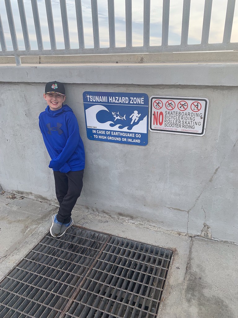 Back at the camper, we packed a lunch and headed out of the park to the other side of the lake to check out the Birch Creek Unit. This area had a much larger boat ramp and day use area. There was a marked area for swimming as well and some people were partaking, but the water didn’t look appealing enough to us. After eating lunch at a shaded picnic table, the boys and I briefly ventured out on the fishing pier that had previously sustained damage but wasn’t repaired yet. That’s where we spotted snake #3!