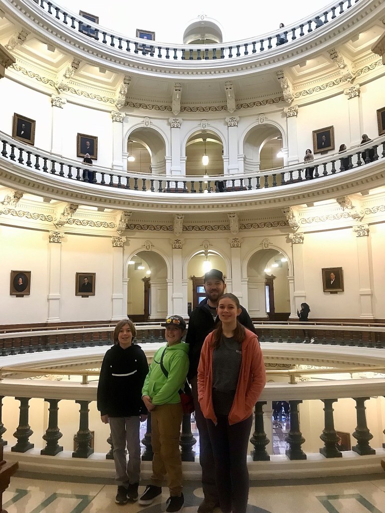 Keeping with gifting a trip for Christmas tradition, we chose a long weekend in Austin for this year. Our main goal was a stay and play at Kalahari Resort in Round Rock and then the rest of the time was pretty easy to fill with other area attractions. We booked only a Thursday night at Kalahari and then 2 more nights at Best Western on the Southeast side of Austin. The policy at the resort is on the day of check-in you can access the waterpark at noon if your room isn’t ready as check-in time is 4pm. The following day, while you have to clear out of the room by 11, you can stay in the waterpark until it closes. So, that was our plan, maximize waterpark time Thursday and for as long at we could stand it on Friday before heading down to Austin. The kids did great patiently waiting for February to roll around and having 2 days to play indoors in heated water while it was winter outside was so worth it.