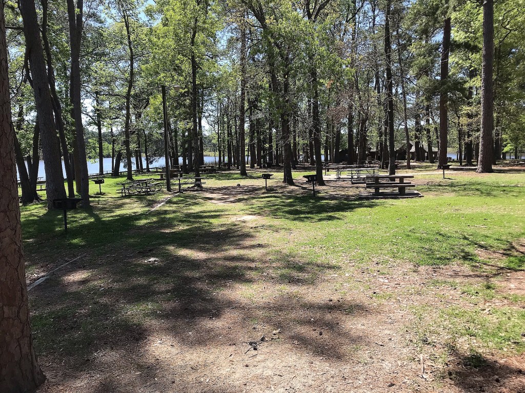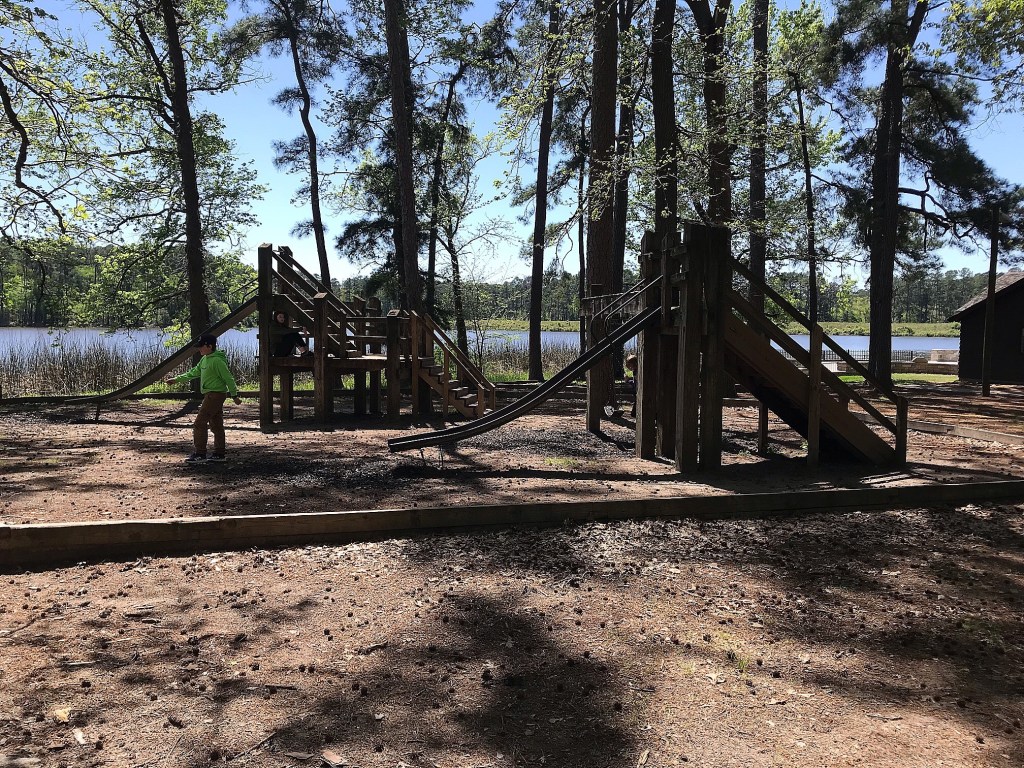 We were on the road a little after 7am Tuesday and hit Huntsville around 12:30 just in time for a picnic lunch. We had the day use area all to ourselves and the kids enjoyed exploring the playground and CCC built lodge. The swim area is closed with caution tape roping it off due to alligators frequenting the area more often the last couple years, but the water had little appeal to us anyway.