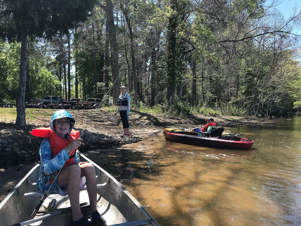 Ashlyn took on our 10ft kayak, Weston started out on the 7ft kayak and Archer took the bow of the canoe. The trail we chose is a little under 3 miles and would take us around the entire unit of the park that was actually an island. We thoroughly enjoyed the dynamic scenery and paddling experience as we fought the wind to pass the mouth of the Neches River to then riding the swirling current, passing our campsite, then re-entering the slough and working our way through the cypress trees like a maze. Around half way through, we beached near the boat ramp for a snack and the boys switched vessels. Archer did an awesome job manning a kayak on his own for the first time! We also really enjoyed the canoe and will likely continue renting those over double kayaks.