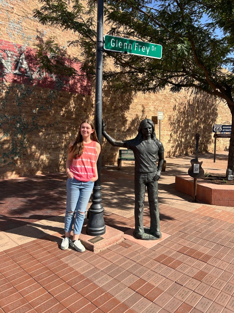 Our second day across Arizona started around 8am and about an hour of driving later, we found ourselves, “standing on a corner in Winslow, Az.” If you didn’t immediately hear the chorus of the song in your head, we can’t be friends haha! We had excellent coffee and heard some great music while there as well.
