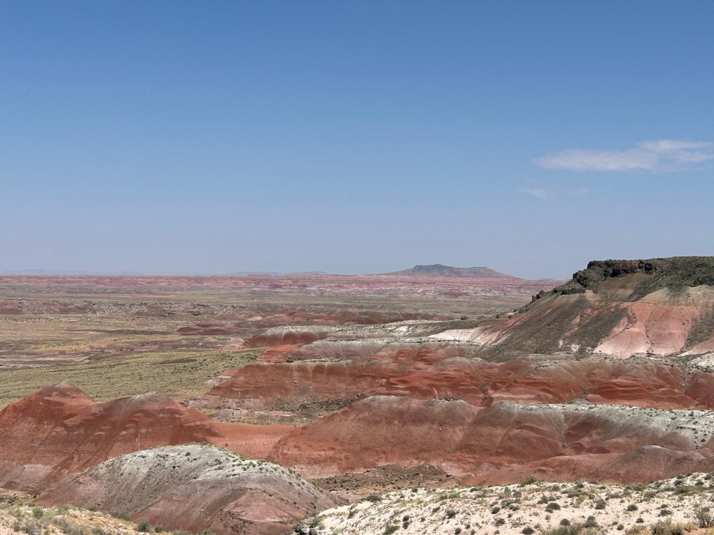 Next stop that day on our way to Roswell, NM was Petrified Forest National Park. We entered on the north end of the park off of I-40 and managed to drive through the entire park pitstopping at POIs along the way before exiting on the south end on highway 180 that we needed to continue our route. The Painted Desert is stunning with its colors and ever changing landscape. We explored ruins of a 10,000+ year old village and pictographs. Then the grand finale of the petrified wood itself and the inconceivable reality that a forest once existed in the now barren landscape.