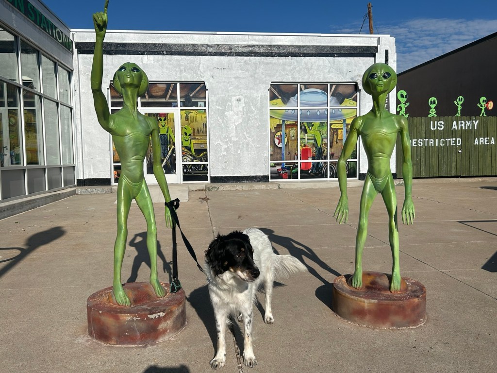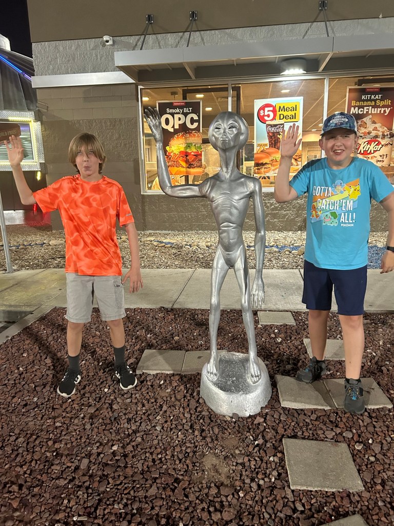 We kind of dilly dallied longer in the Petrified Forest longer than anticipated and didn’t make it to Roswell till after 7 when most of the shops and restaurants were closing. We grabbed a bite at Whataburger, took some photo ops outside the McDonalds and called it a night.