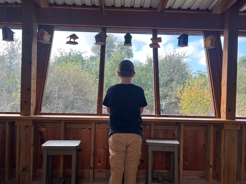 Then we went to the opposite side of the highway that divides the park and walked a short nature trail that took us to a rather high-end bird blind.