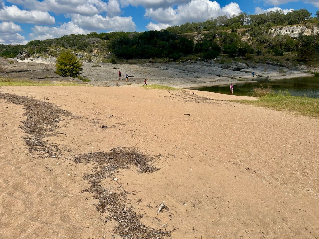 When the trail opened up at the base of the falls, I was blown away by the enormity of it! The first we noticed was the debris line on the beach from the July flooding in the Hill Country. Absolutely astonishing to think about that area raging with floodwaters.